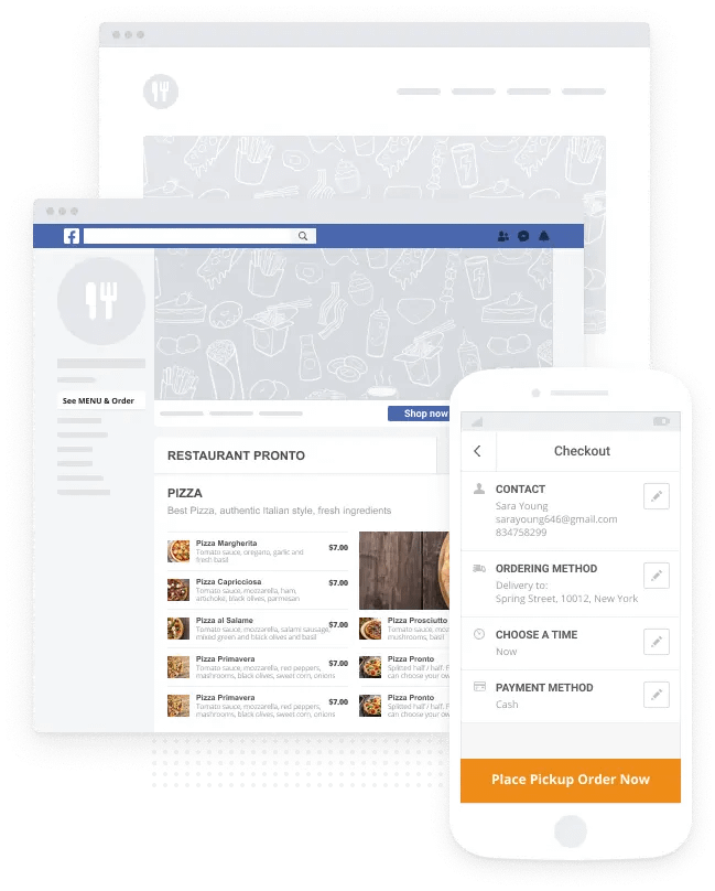 With our cheap restaurant ordering system, you can set up an account & start taking online orders within minutes, straight from your:
